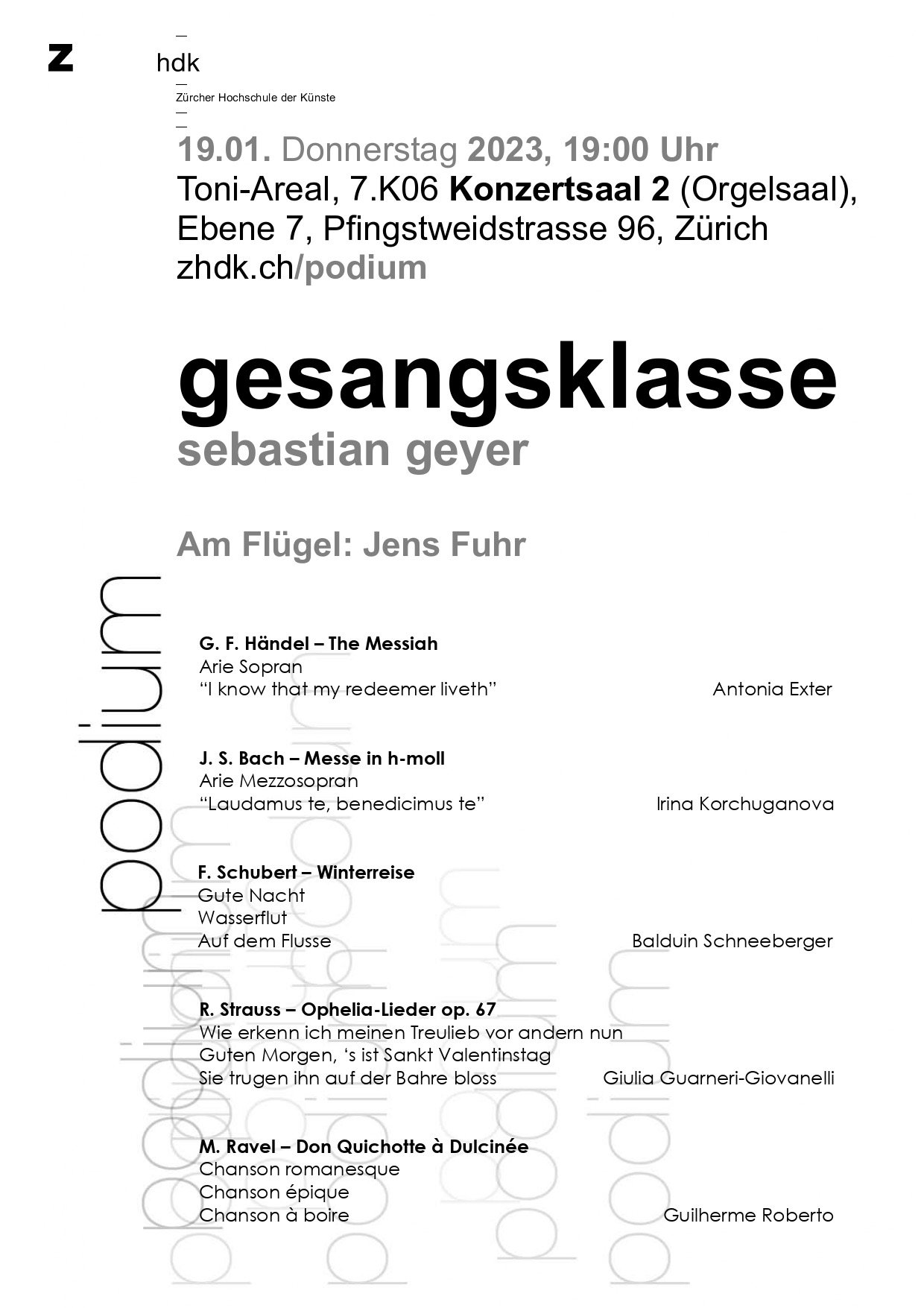 ZHdK presents the concert of the Pr. Sebastian Geyer singing class in their Bachelor and Master.